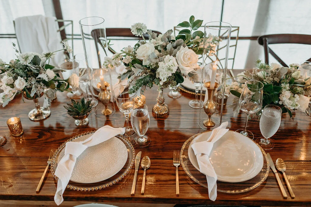 Occurring during the craziest rainy week of October this year, the ceremony originally planned creekside in "the park" area where family held many events was moved inside the pavilion. Organic drapery was added for warmth which made the space intimate and inviting. Filled with candlelight and a full length greenery wall - it was a romantic spot to spend the evening .